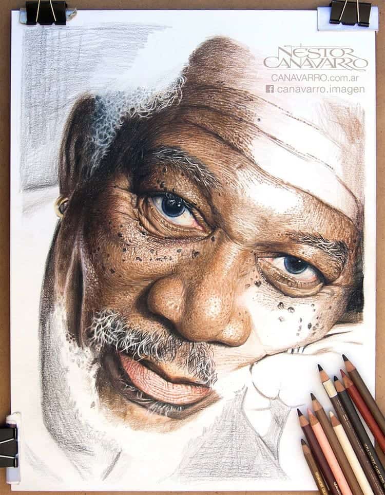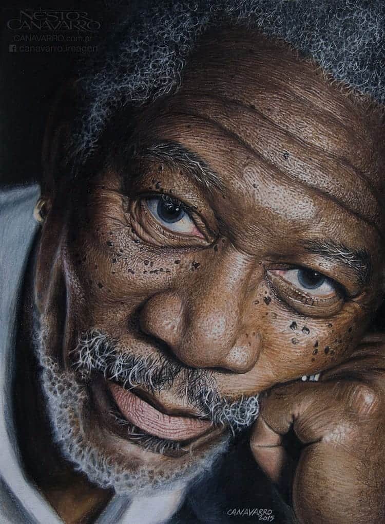 The below portrait of legendary actor Morgan Freeman is so incredibly detailed that you might assume that what you're looking at is an oil painting. The work is exquisite and it's hard to believe it was created using a bunch of simple colored pencils. Talented artist Nestor Canavarro spent more than 50 hours on the sensational piece, which measures 30 x 40 centimeters. Take a look!