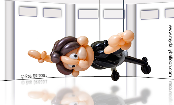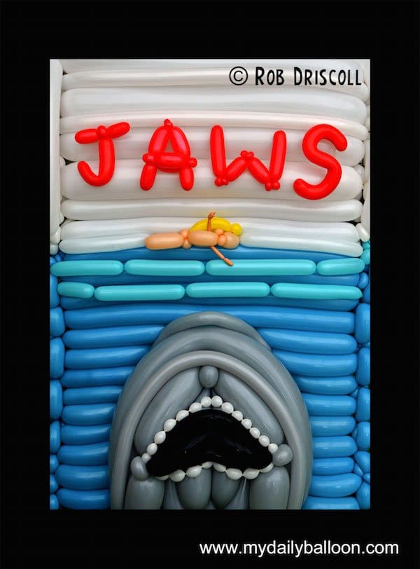 If you've got a talent, you should certainly use it. But, what if your talent is making balloon animals, balloon people, and other assorted balloon things? Why, we suppose your best option is to become a balloon artist. That's exactly what Rob Driscoll decided to do with his life, and from the looks of it, he's doing very well. One of his recent projects is called "Twisted Cinema" and what Driscoll does is use his balloon manipulating skills to recreate either famous movie posters or iconic scenes from movies, such as that scene from Mission Impossible (you know the one…Tom Cruise comes down from the ceiling on a bit of string, or whatever). Driscoll's colorful balloons-meet-movies art is a delight to behold, in a whimsical yet surprisingly accurate way. He is in the process of completing one of these twisted cinema pieces each week for a whole year, so you can catch up on his website if you like what you see below.