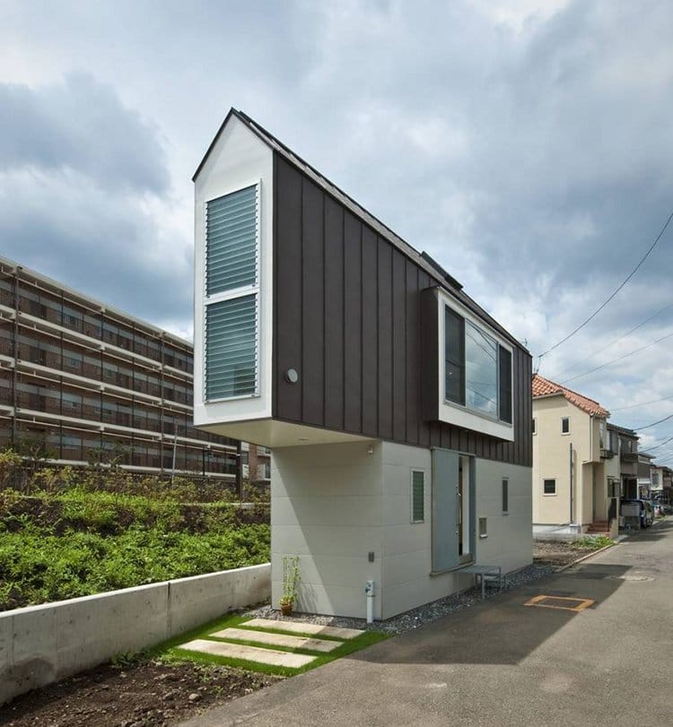 The 594 square foot house was designed by ‘Mizuishi Architects Atelier’. Situated in an awkward triangular space between a road and a river, you’d be forgiven for thinking the house would be very cramped. Surprisingly, the house has two floors and a ladder accessible mezzanine level. Check it out!