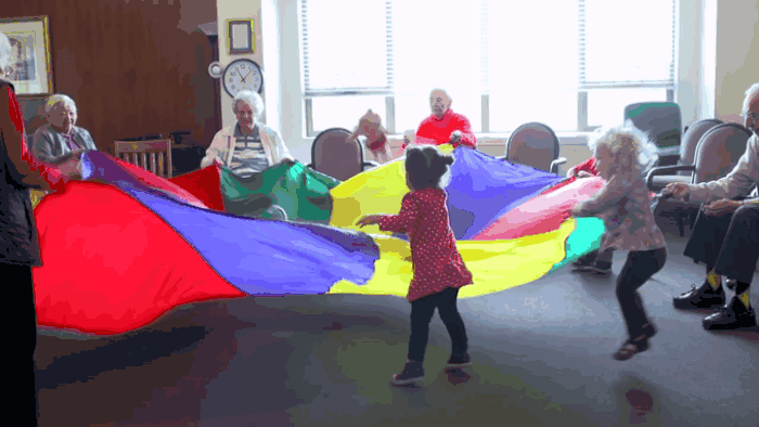 Preschoolers are obtaining wisdom and learning important life lessons by being paired up with the elderly at Providence Mount St Vincent in Seattle, WA. The nursing home, which houses 400 elderly residents, now also houses the Intergenerational Learning Center, a childcare facility that allows infants to five year olds to interact with older people. The kids benefit by learning about the ageing process, and are taught not to fear older folk or people with disabilities. Currently, 43% of older adults experience social isolation, and having the kids there gives residents at Providence joy and a renewed sense of self-worth, as they help to teach the toddlers important skills. Activities the children and older adults do together include music, dancing, art and storytelling. The unique project has already been hailed a great success! Check out images of the project, below…