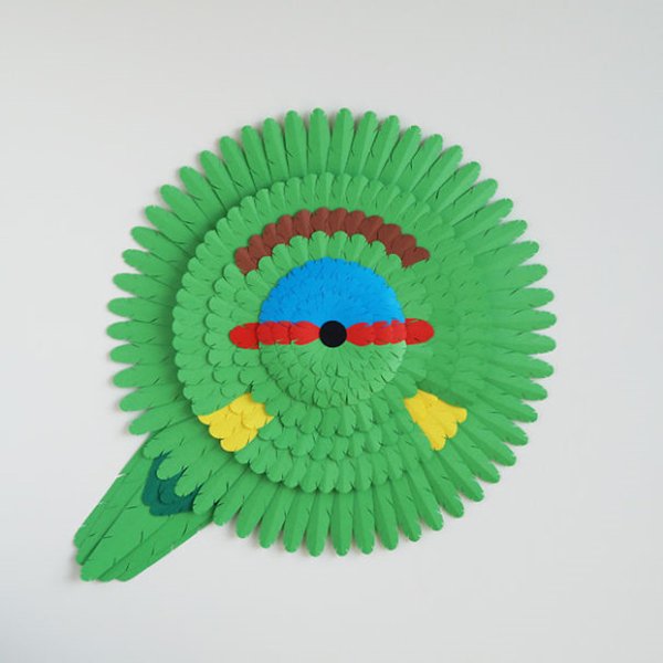When Marine Coutroutsios moved to Australia, she was struck by how different the wildlife was to that of her native France. What caught her eye most of all, were the bright and colorful birds that could be found everywhere, even in the middle of cities! Armed with a guide to Australian birds found in a local library, Marine started making this gorgeous abstract paper art inspired by the nation's birds. Even though they're not literally representations of the birds, you can imagine what the bird each one is based on would look like, in all it's bright-plumed glory. Let's take a look.