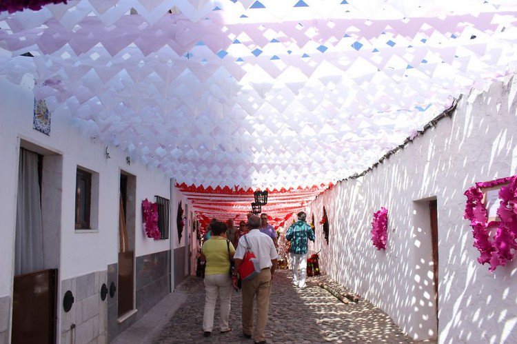 The 'Festas do Povo' (People's Festival) aka 'Festas das Flores' (Flower Festival) in Campo Maior, Alentejo, Portugal is one of the most incredible paper-art spectacles ever. The local residents have worked on preparations for this year's festival, held at the end of August…for 4 whole months! There are garlands and canopies of ornate paper flowers bedecking houses, roads and even churches. The streets of the entire community are alive with color and happiness at every turn and everyone helps out. A must see!