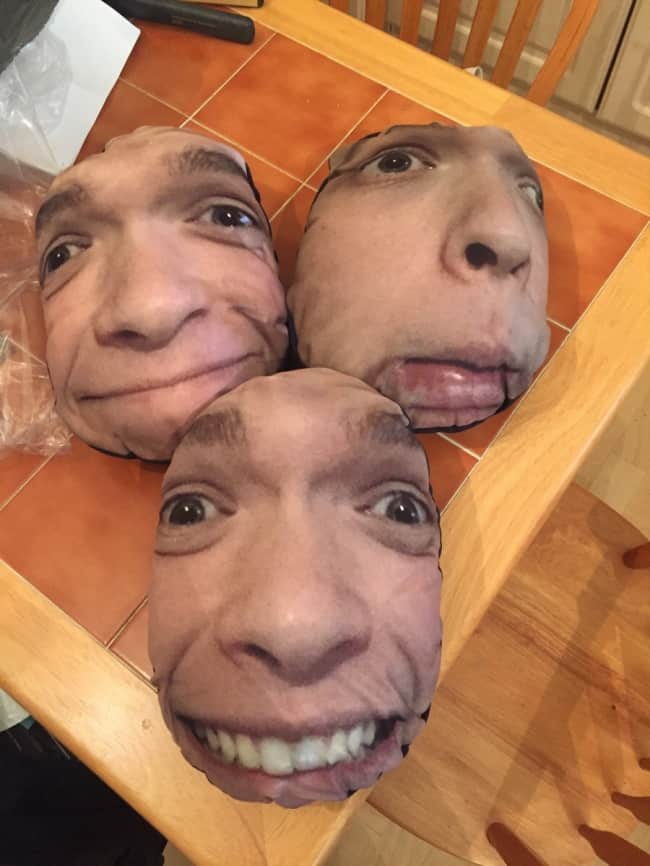 ‘So my brother got my entire family these plain black mugs… but when they get hot, they’re covered entirely in my mug shot’. Awkward!