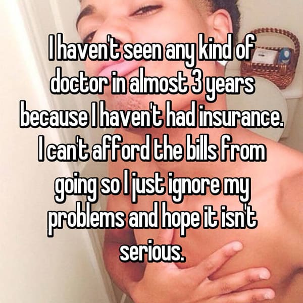 The American health system often causes huge debate. Some people have faith in it, arguing that paying for services prevents the hospitals and staff from being overwhelmed with patients who want to see a doctor every time the smallest thing is wrong. However, others feel that that it’s totally unfair and immoral, leaving millions of people vulnerable to severe illness and death purely because they can’t afford costs. Here we have a list of confessions from American people that do not have health insurance. Take a look…