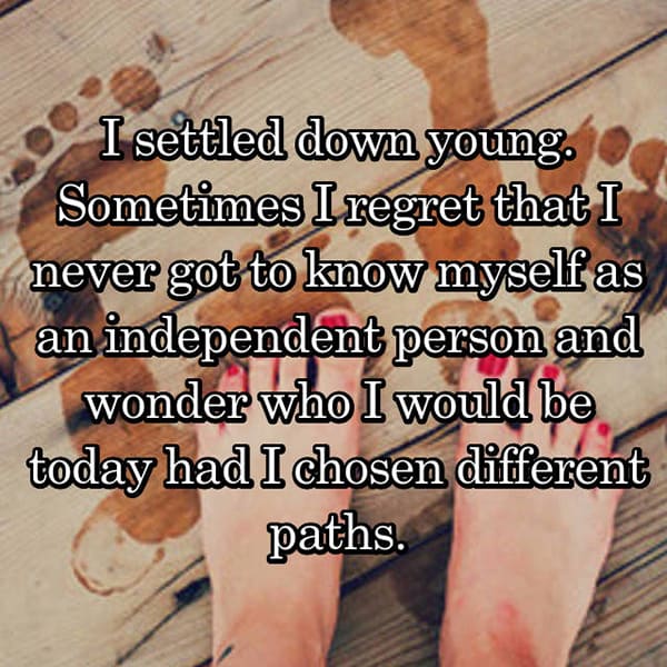 There are those who don’t settle down until their elder years and then there are those who settle down in their early youth. Both of these categories of people will possess those who feel this was the right decision for them. However, unfortunately, sometimes we find ourselves questioning our life choices when it feels like it’s too late to change things. Here we have a selection of people who settled down young that now feel different levels of regret. Take a look and see what you think…