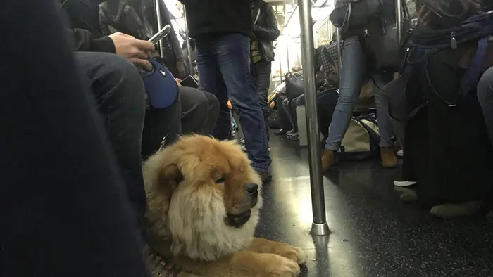 “This dog sitting at a subway”