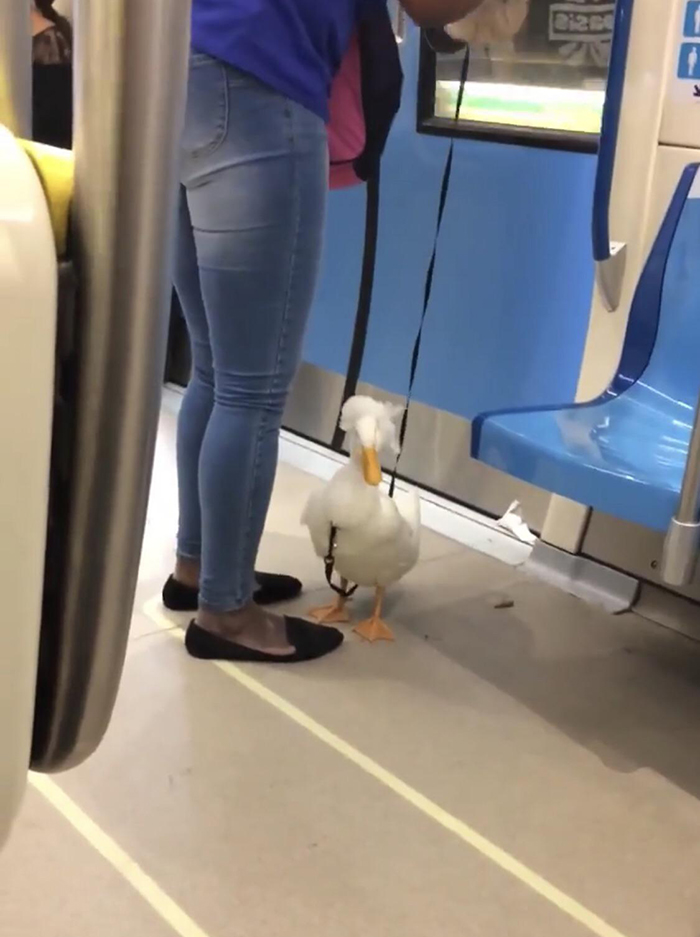 “Just a lady with her pet duck in the metro”