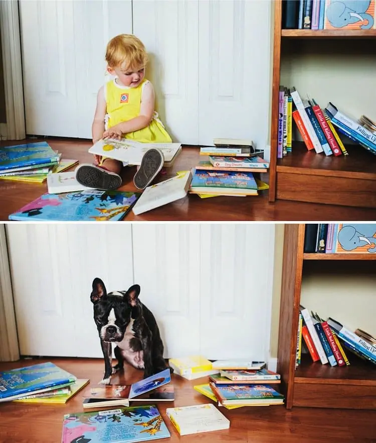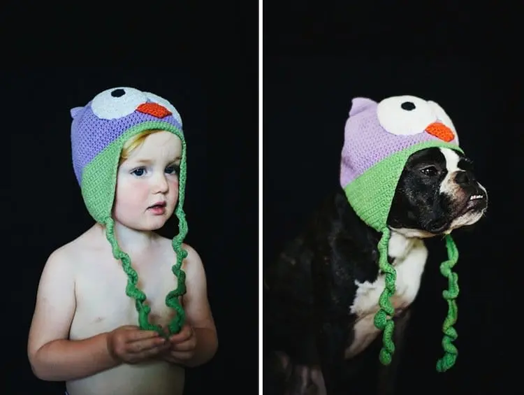 Who "wore it better"? Tot, or pooch? Photographer Jesse Holland had a whole lot of fun creating the below series of images showing her daughter, and dog, posed in the same setting, with the same props. Holland got the idea about a year ago when her daughter received a hat from her parents. On a whim, she photographed firstly her daughter, and then the family dog, wearing the same head gear. She told 'BoredPanda' she then got "hooked" on creating scenarios in which she could compare her dog with her kid. Hilarious!