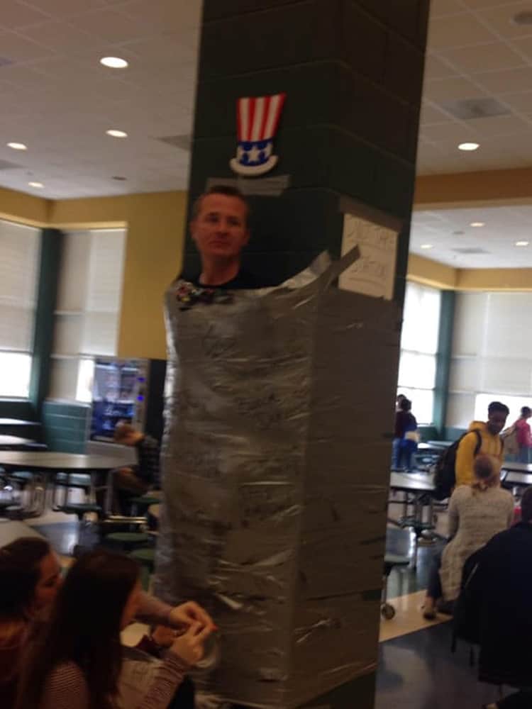 Something weird is happening in this school. I wonder what he did to be punished like this but I bet it’s serious enough to let the students get him stick around.