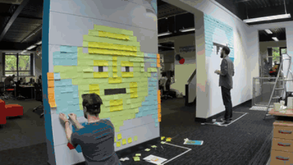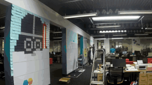 Most office walls around the world are pretty stark and boring. Workers are lucky if they get a standard print of a vase of flowers, or perhaps a benign landscape, to cheer them up during a tough day's toil. Yet employees at some companies are now fighting back against boring walls. How? By taking the ubiquitous Post-It note pad and putting it to good use, as a means of decoration. One such company doing just this is 'Viking', an office supply firm where staff recently created the most amazing Star Wars wall murals, using precisely 3579 Post-It notes. Characters depicted include Darth Vader, R2-D2, Yoda and a Storm Trooper. Take a look!