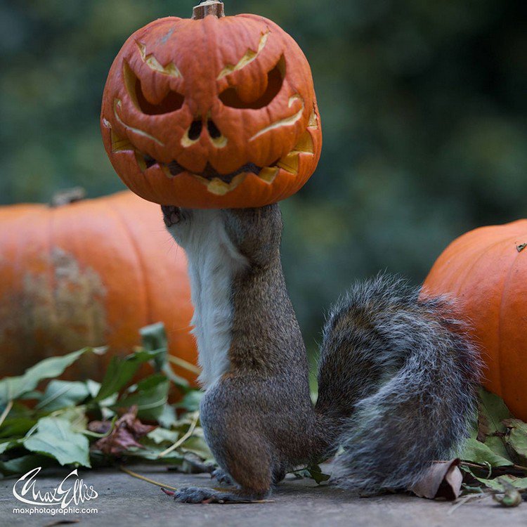 British photographer Max Ellis just loves watching squirrels frolicking in his backyard. When he saw what they were doing with the Jack O'Lantern and pumpkins outside at Halloween he just had to get his camera out and get snapping. Ellis manages to get some totally amazing shots during his photo shoots by leaving treats out for squirrels alongside the props he wants them to play with. In fact Ellis prides himself on having some of the best fed squirrels on earth right on his doorstep!