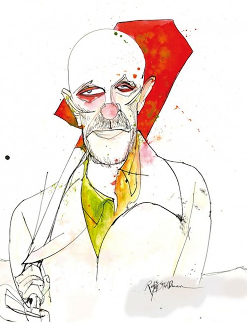 Even if you don't know Ralph Steadman by name, you'd probably know his work to look at it. His mad and frenetic line drawings are characterized by ink splatters and washes of color. Steadman most famously worked alongside the late, great Hunter S. Thompson, illustrating his books and articles, but has also worked with countless other publications, such as Private Eye and The New York Times. This time, he has collaborated with the makers of the hit TV show, Breaking Bad, to create drawings of the main characters to go on the front of special edition Blu-ray releases. If you know Ralph's work, you'll understand why he's the perfect man for the job. Let's take a look!