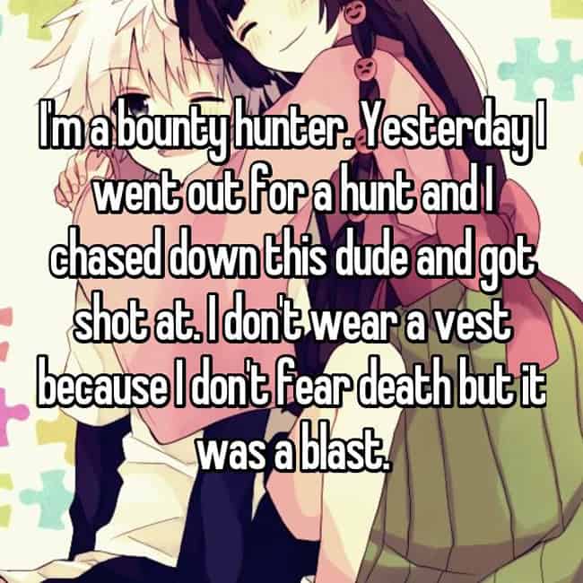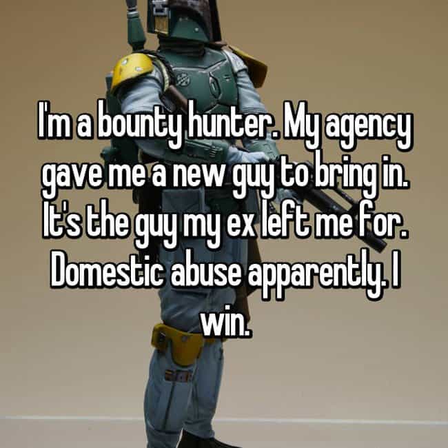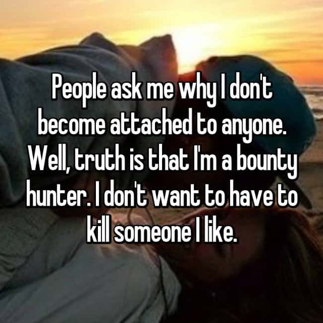 9. Sometimes, telling people the truth can be hard, too. Especially if you tell them you’re a bounty hunter.