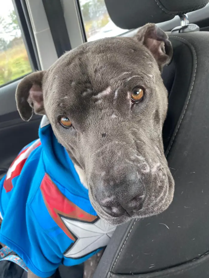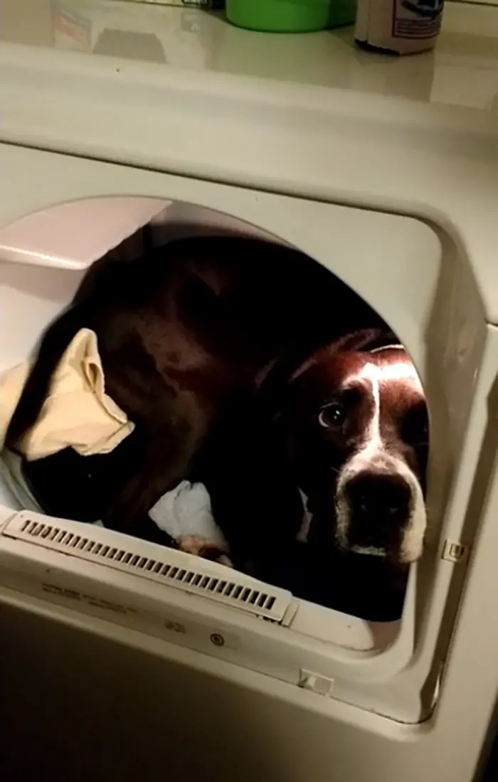 “Rescued junkyard dog became HUGE fan of warm and dry towels and blankets.”
