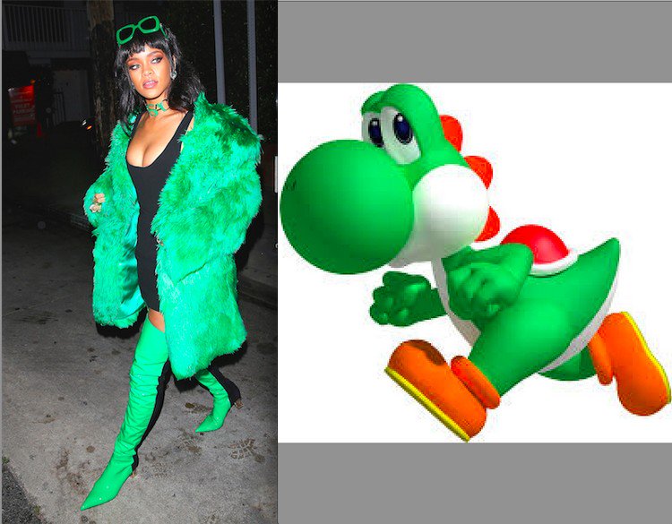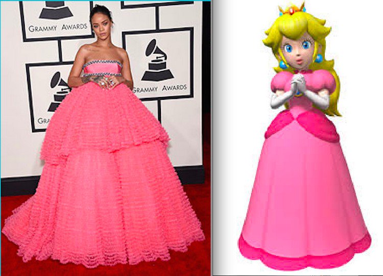 Ranzok on Reddit and his girlfriend are heavily into video gaming and it seems like Rihanna might be too. You see, Ranzok's girlfriend noticed that the singer's crazy outfits often seem to have a theme… Mario Party characters! We love the Princess Peach comparison! Check out the photos below and see if you agree.