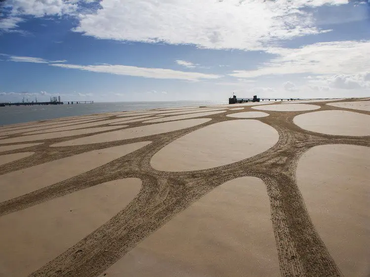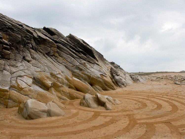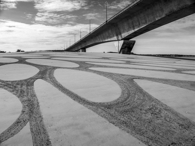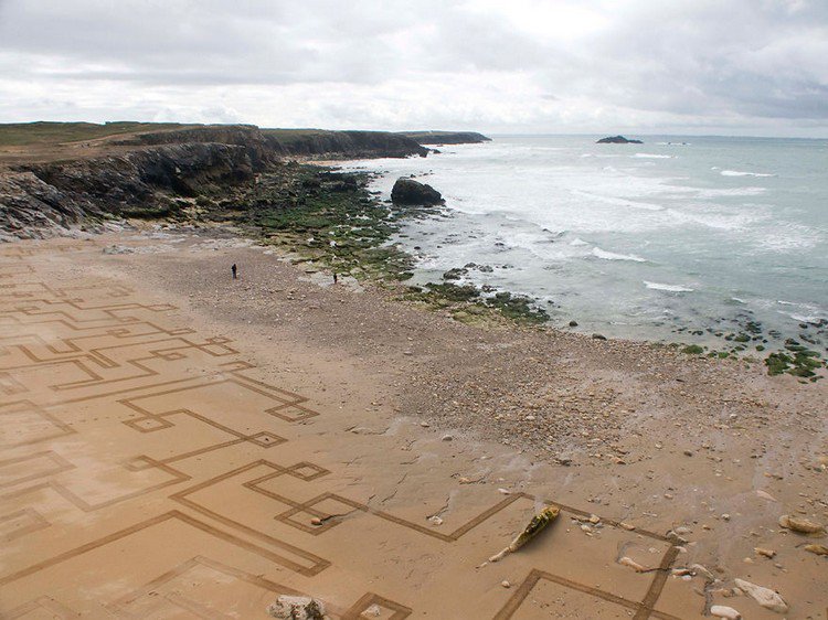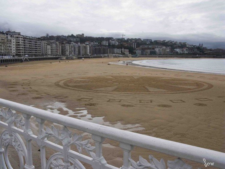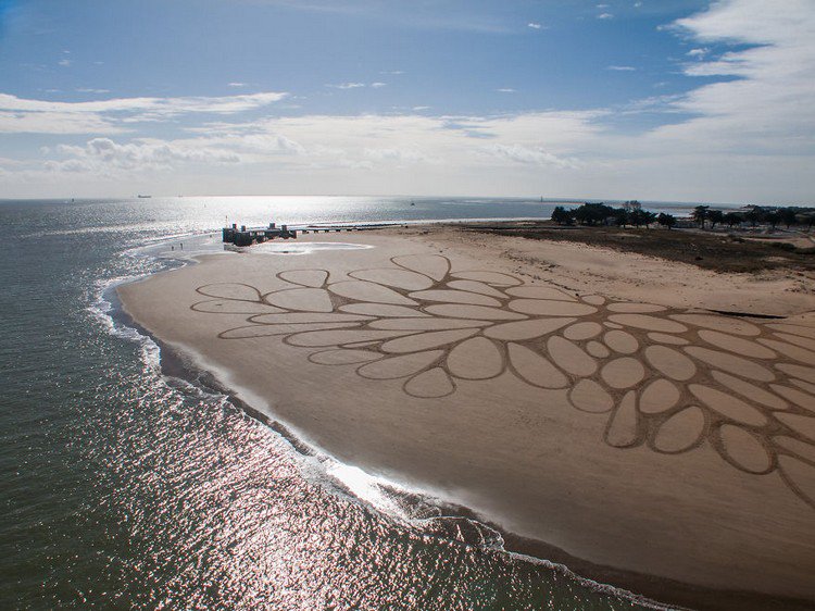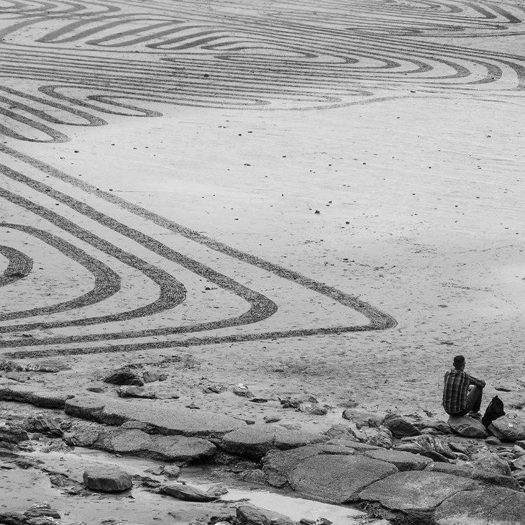 Artist Sam Dougados scours the four corners of the earth in search of beautiful beaches at low tide. When he finds a location with the right feel and look, he gets to work with his rake and creates huge geometric sand drawings. His work focuses on humanity's relationship with nature and the on the essence of who we truly are.