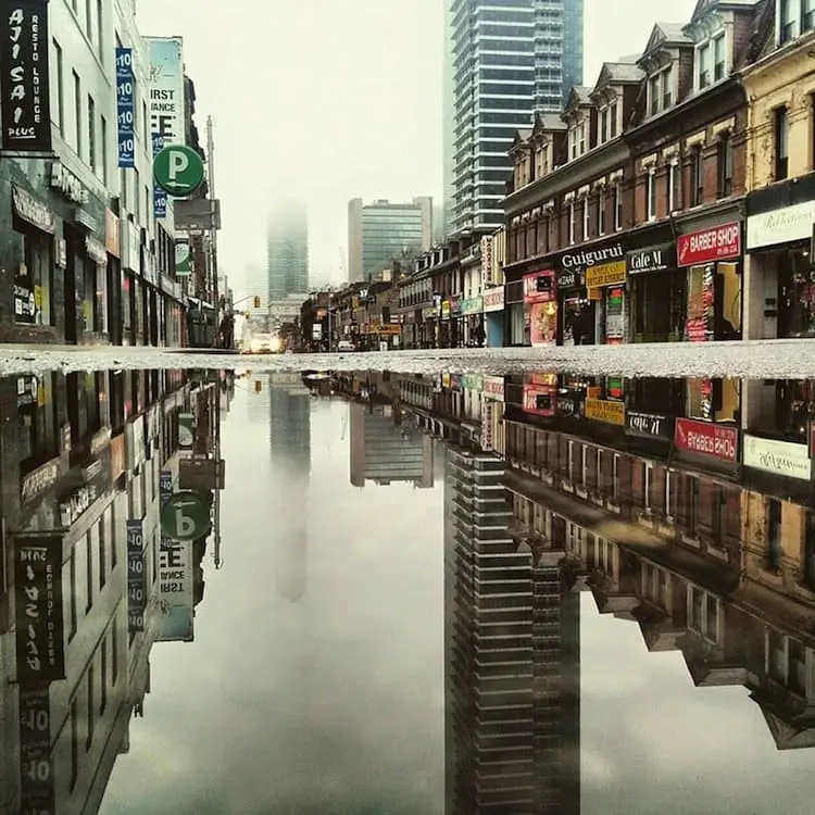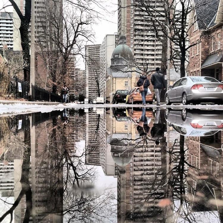 A photographer who goes by the Instagram name, @Guigurui is living proof you don't need a fancy camera to create wonderful, artistic images that would look good hanging on any wall. Guigurui is a dude who is simply fascinated by the "parallel worlds" puddles offer us via a camera lens. While most people view rain as a downer for when you want to take good photographs, for Guigurui, rain, (or at least the aftermath of it) excites him no end. In fact, he just can't help but photograph every single puddle he sees. Check out some of his best puddle shots from around the world!