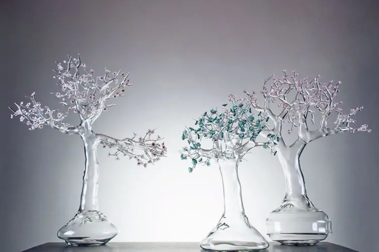 Italian artist Simone Crestani has been blowing glass since he was 15 years old. He comes from the Venice region, where working with glass is one of the traditional crafts, so this type of art is in his blood. Crestani creates beautiful glass sculptures that combine his love of glass work with his love of the natural world. These glass plants and animals have a magical and ethereal quality, as though they were formed of ice. Talking about his work, Crestani writes…
