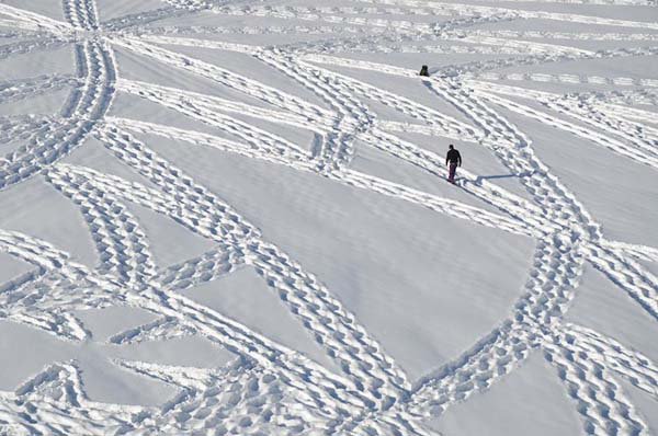 Take a look at these incredible images created in the magically beautiful Savoie Valley near Mont Blanc, France. They are totally out of this world aren't they? Created by carefully walking for hours on end in special shoes, artist Simon Beck has an incredible talent. Even though a new fall of snow could happen at any moment completely obscuring his incredible works of art (which he creates in accordance with a mathematical formula) he still puts his all into every piece. What an amazing guy!