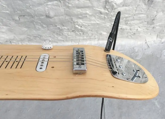 Anyone who is trying to be different or alternative should probably stay away from playing a regular six string guitar as their instrument of choice. We mean, everyone and their moms play guitars these days. So, what kind of instrument will set you apart from the rest of the bunch? We've got an idea for you right here! New York design company 'Stereotank' have come up with an unusual and totally cool idea for an instrument. It's based on the idea of a lap steel guitar, but this is a lap skate guitar. This skate deck has been modified so it also has a bridge, fret board, jack input, volume knob, tuning pegs, and all the other bits of hardware you need to have a functioning guitar! Check out the pictures and watch the video below of how it's played!