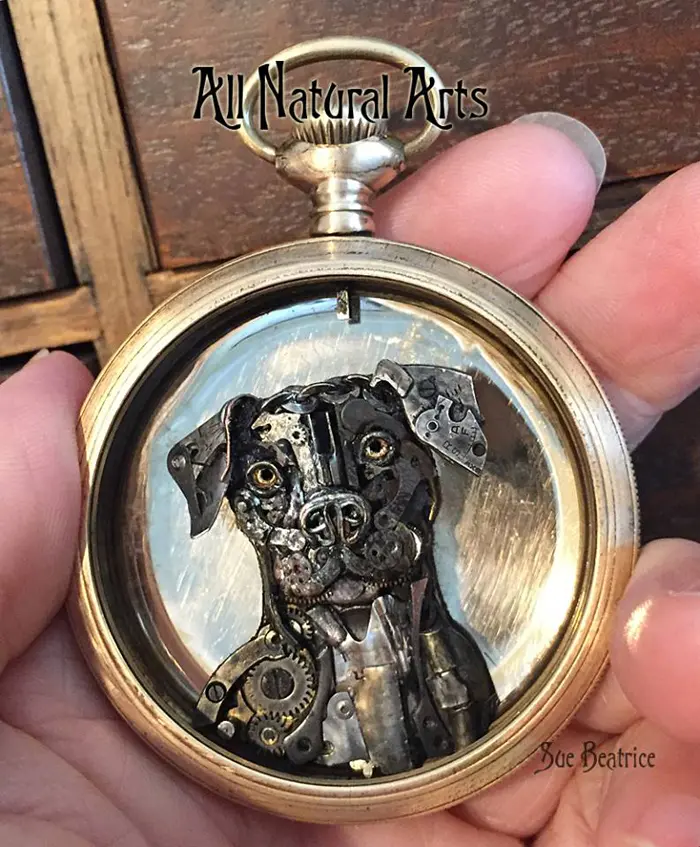 Nothing is dispensable in this world, whether it’s a living thing or not. But we’ve got to face the fact that nothing also lasts forever. Everything will age in time and eventually wear out. Ironically, even the indicators of time also concede to the test of time. Yes, even clocks and watches get old just like everything else. Nonetheless, people still find ways to restore or recycle old, worn-out objects including clocks and watches. Just like Sue Beatrice, an artist from New Jersey, who found a way to give new life to old watches. She upcycles vintage pocket watches, gears, sprockets, and any discarded items that can still serve a purpose. Then she assembles these parts to create spectacular tiny sculptures made entirely of recycled watches.