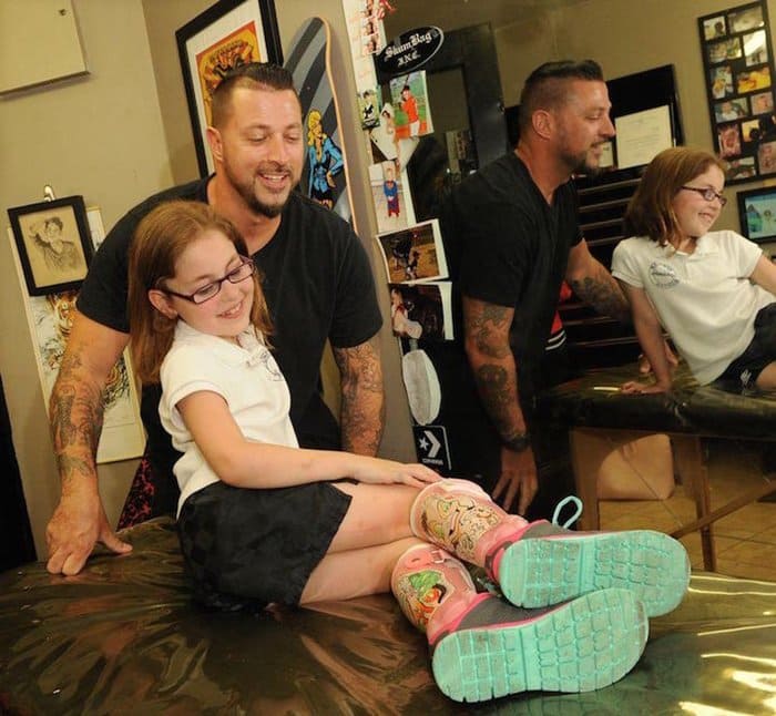An 8-year-old girl named Hope, from Boston, was born prematurely and has since faced a host of health issues, including cerebral palsy and epilepsy. On top of this, little Hope has had to wear leg braces since she was four. It's not easy being a kid at the best of times, but with these added challenges, things could get you down. Hope's parents wanted her to feel more comfortable and stylish in her leg braces, so they came up with a solution for this Disney-mad little girl. They got tattoo artist Aaron Guillemette, to customize Hope's leg braces with some badass Disney villains, and the results are awesome. Check it out!