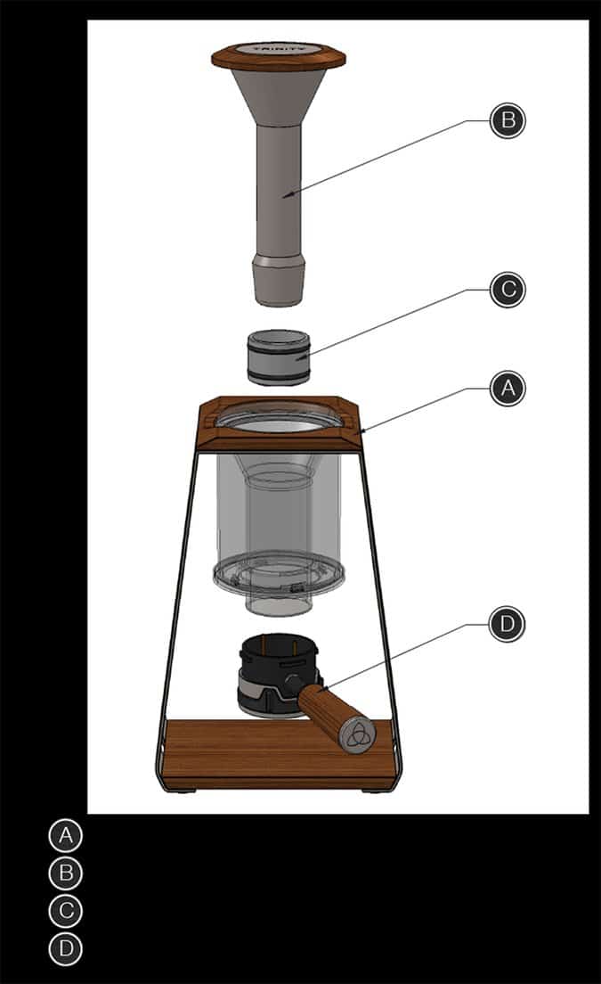 The 'Trinity ONE' is a device for brewing speciality coffee. It has numerous brewing methods including pour over, air pressure and cold brew. Its minimalist design reduces bench top clutter and is presented in a high quality stainless steel with a black walnut timber finish. Check out how it works below!