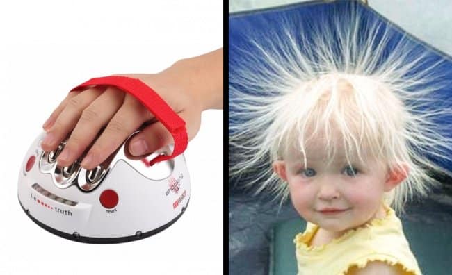The truth will set you free. And if you lie, this Shock Lie Detector will deliver a small electric shock that can raise your hair.