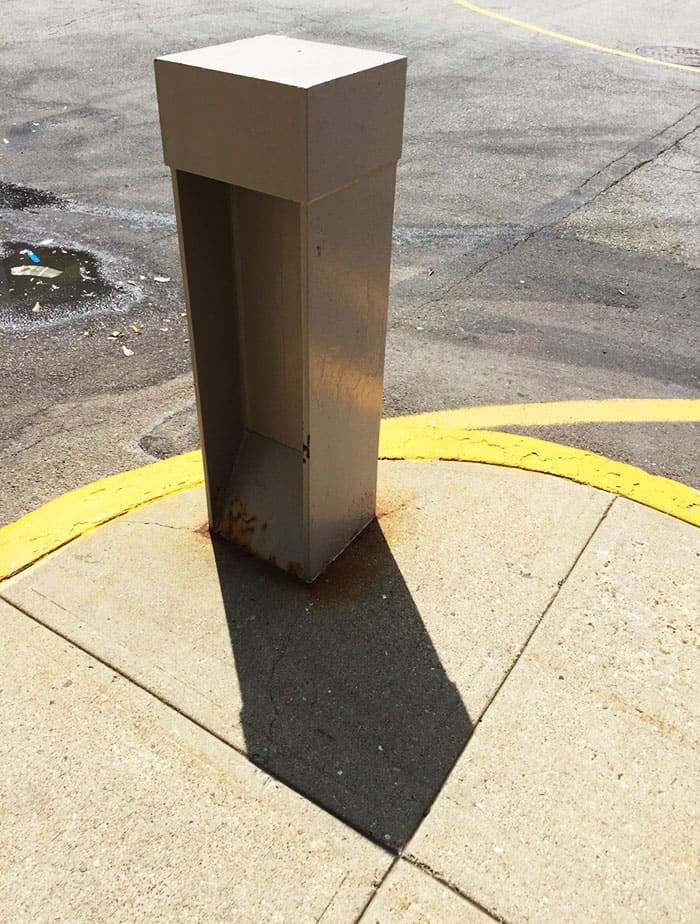 The line on this parking lot floor continues on perfectly through this car’s decal!