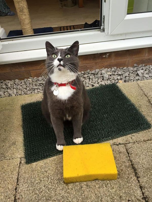 This feline has a thing for sponges.