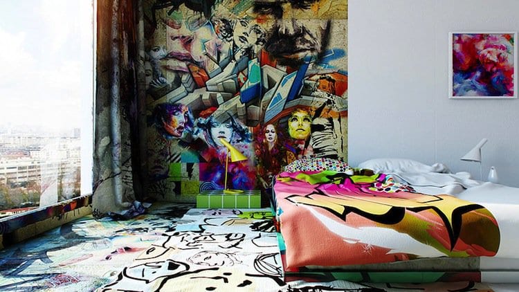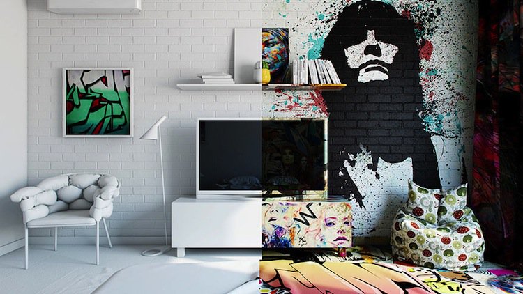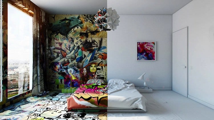 Do you like a hotel room to be all white and minimalistic? Or would you prefer a colorful, edgy room that brings the graffiti art of the street, inside? Well, if you stayed in the below room designed by Ukranian artist Pavel Vetrov, you could literally have it both ways. Bizarrely, Vetrov had the idea to create a hotel room concept where the room is split in two. Each half sports a very different style of decoration. On one side, everything is almost entirely white, whilst the other, is covered in graffiti. A stark contrast, but a pretty cool idea. Check it out!