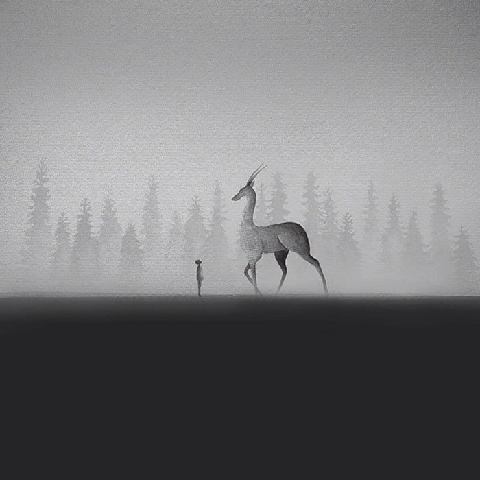 You have to see these black and white watercolor silhouette paintings by Indonesian artist Elicia Edijanto. These achingly beautiful paintings depict meetings between children and wild animals. This series of paintings seems to be an exploration of childhood innocence, as you see these kids standing in front of creatures most people would be terrified of, showing no fear. There is something so haunting about these images that seem to convey a feeling of loss and longing. Looking at these paintings, you realize you miss that sense of magic in your life and the feeling that everything is good and could do you no harm. If you like Edijanto's work, it's possible to buy prints of some of her paintings by following the links on her website.
