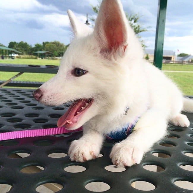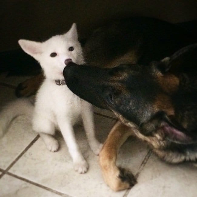 Even if you don't like foxes, you'd have to agree that this one is absolutely adorable. Rylai is a domesticated white red marbled fox, now aged two months old. Her color is the result of more than a century of domestic breeding. She is not albino. Her color does not occur in the wild. Rylai lives at home with her owner, and two dogs, who as you can see below, she loves like brothers. Her owner describes Rylai as much more stubborn than a cat or dog. "When she wants something, it is much more difficult to deter her," she is quoted as saying on BoredPanda, adding she can't leave her pet alone for more than two hours at a time. The little fox is still learning to walk on a lead. Check out these adorable pics of her growing up!