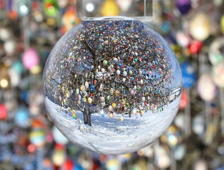Originally Kraft began with plastic eggs however every one he used on this tree was real!