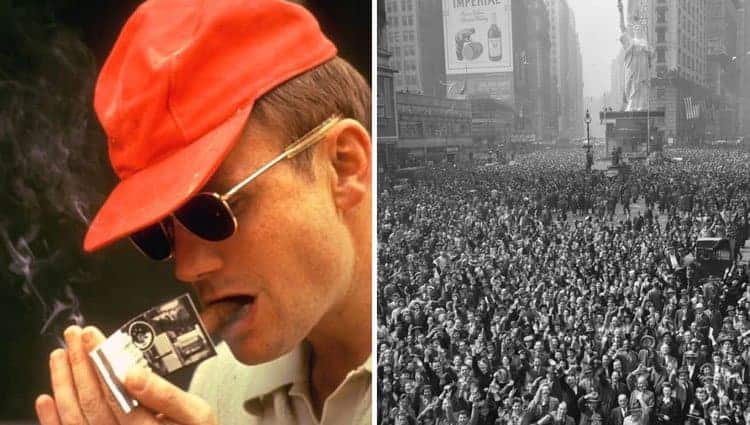 When the crowd celebrates the surrender of Germany (New York, 1945):