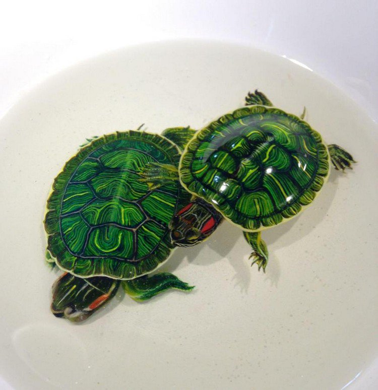 You could easily be forgiven for thinking these aquatic animals are the real deal however Keng Lye has painted them layer by layer onto resin. The Singapore artist has aptly named the series 'Alive Without Breath' as his creations are so incredibly lifelike. It's as though these creatures have been frozen in time, ready to become animated again at any minute. He gets the 3D effect above the 'water' for works such as his octopus (shown below) by sculpting with gel. This guy has one amazing talent! Let us know what you think of his work in the comments below.