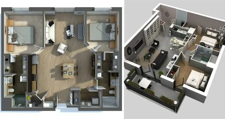 19 Awesome 3D Apartment Plans With Two Bedrooms – Part 1