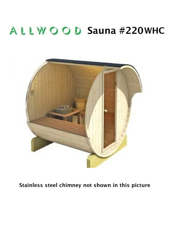 Allwood Barrel Sauna comes with all the necessary materials for the walls, seats, roof, flooring, and glass door. All wood materials are made from Nordic Spruce. We highly recommend coating the outside walls with varnish, paint, or stain to make the wood lasts longer. In addition to these, this 4-person sauna also comes with a canopy, support cradles, steel chimney, and air vents. Of course, sauna is not complete without a reliable heater. The DIY 4-person sauna kit also comes with Finland-made Harvia M3 wood-fired sauna heater along with Harvia sauna stones.