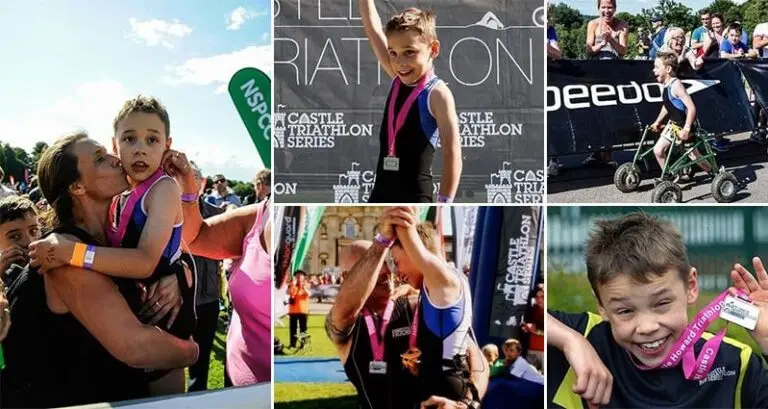 Eight year old Bailey Matthews is a true inspiration. While most other kids his age are cooped up inside playing video games, he is out training… swimming, biking and running. The lad, from Doncaster, England recently competed in his first triathlon, the 5.6 km 'Castle Howard Triathlon', finishing in just under 90 minutes. What's even more amazing is that Bailey has cerebral palsy, a condition that drastically limits a person's capacity for physical activity. Those who suffer from cerebral palsy often experience muscle spasms, lack of balance and often require a walker or other aid in later years. Bailey knows all of this, yet he didn't let it affect his decision to be a triathlon superstar. Way to go, Bailey!