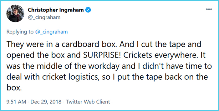 Man Shares Hilarious Story Of How He Accidentally Released Hundreds Of Crickets Inside His Home