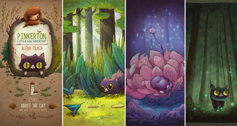 This charming illustrated series by Alena Tkach, follows the adventures of Pinkerton, the little cat who gets lost in the forest. Don't worry though, there is nothing scary about these beautiful pictures, the little kitty finds lots of friends to help him find his way back home! Tkach says of the little cat…