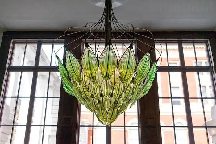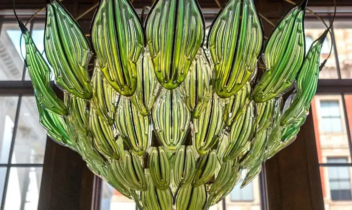 Melchiorri calls his bionic chandelier by the name Exhale and is now a permanent part of the V&A Museum Collection. This green chandelier features 70 synthetic leaves with green algae living inside to stimulate photosynthesis for air purification. It is an eco-friendly yet elegant chandelier that gives off a warm glow while purifying the air.