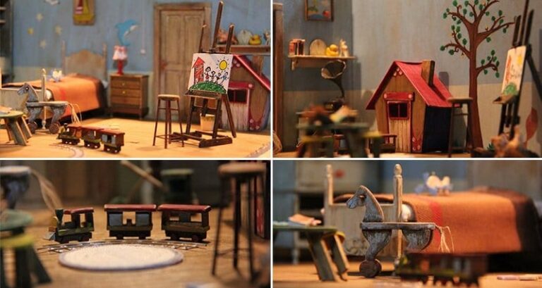 As a young boy imprisoned in Iraq, Ali Alamedy dreamed of having his own beautiful room filled with playthings and books just like a regular boy. Six years ago he embarked on a project creating a mini farm scene and his miniature art grew from there. Ali was recently contacted by a book publisher who brought up the idea of using miniature scenes to illustrate a new book. Naturally Ali jumped at the opportunity and finally got the chance to build that room he dreamt of so many years ago. Take a look!