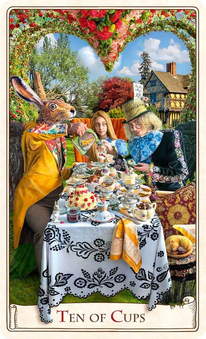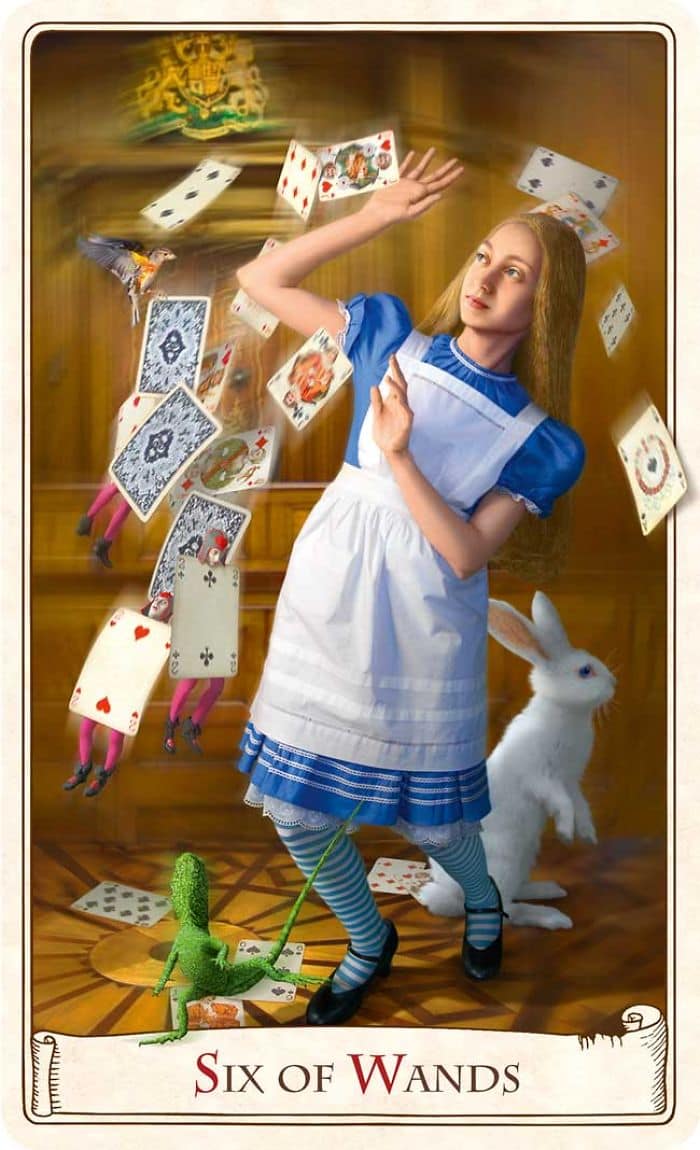 Prague-based Karen Mahony and her partner Alex run Baba Studio. Specializing in modern baroque design they create textiles, jewelry, illustrations, tarot decks and more. Back in 2009 the couple began work on an Alice In Wonderland tarot deck estimating it'd take around a year to complete. Five years later they had finished, just in time for the 150th anniversary of the publication of the first edition of the well-loved children's book. Check out the photos below to see their awesome work.