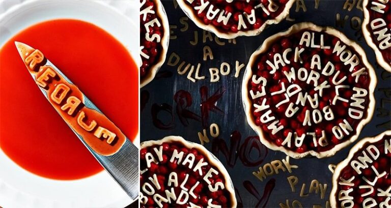 Photographer Davide Luciano and food stylist Claudia Ficca have teamed up in the past to work on various projects. This time, they've gone for quite an unusual concept, paying tribute to the classic horror film The Shining in a series of food photos. The series, called All Food and No Play, features everything from a snow pea labyrinth to a very familiar-looking pair of cupcake twins. Although they might seem a little whimsical for some horror fans, we think these photos are awesome.