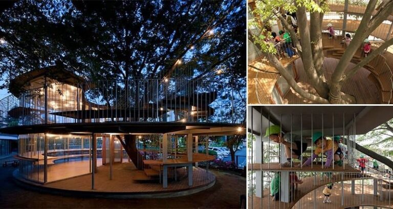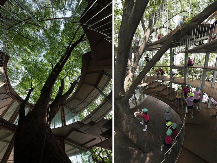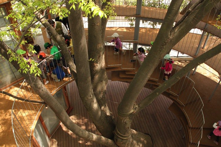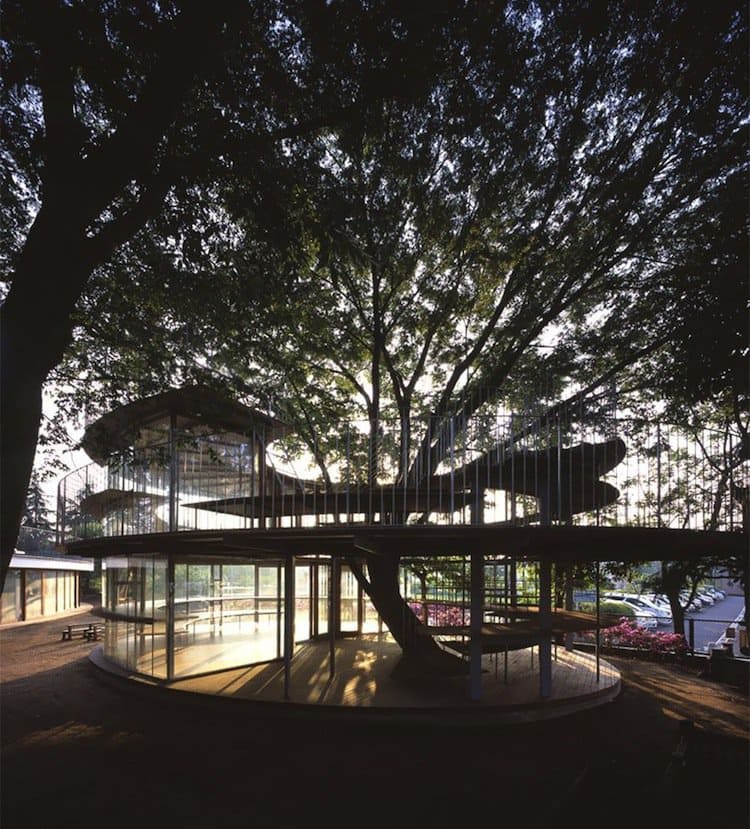 Imagine being three years old and heading off to this amazing kindergarten every day! 'Fuji Kindergarten' in Tachikawa, Japan, is bound to be the most amazing learning environment (in terms of its actual structure) that you've ever laid eyes on in your life! Built as a ring around a Zelkova tree, the glass, steel and wood construction lets the kiddies see the tree at all times while developing as tiny humans! Check it out!