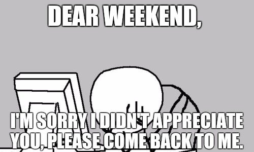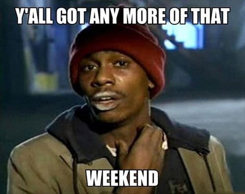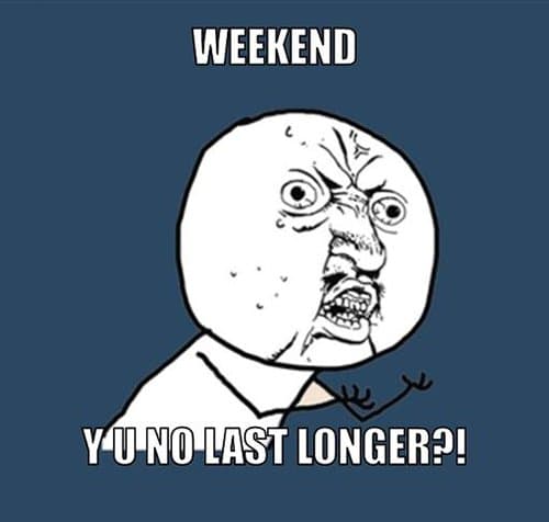 Welcome to part 2 of our series on amusing images showing how we feel about the weekend! As much as we all love our cherished days off, there are a few downsides. For example, the horrendous state your bank account gets in after a fun weekend. Then there is the battle between wanting to do absolutely nothing contrasted with the want to make the most of your free time and do loads of activities! However, the worst thing associated with weekends is hands down how quickly they fly by. Take a look below for more amusing images and enjoy your upcoming weekend!