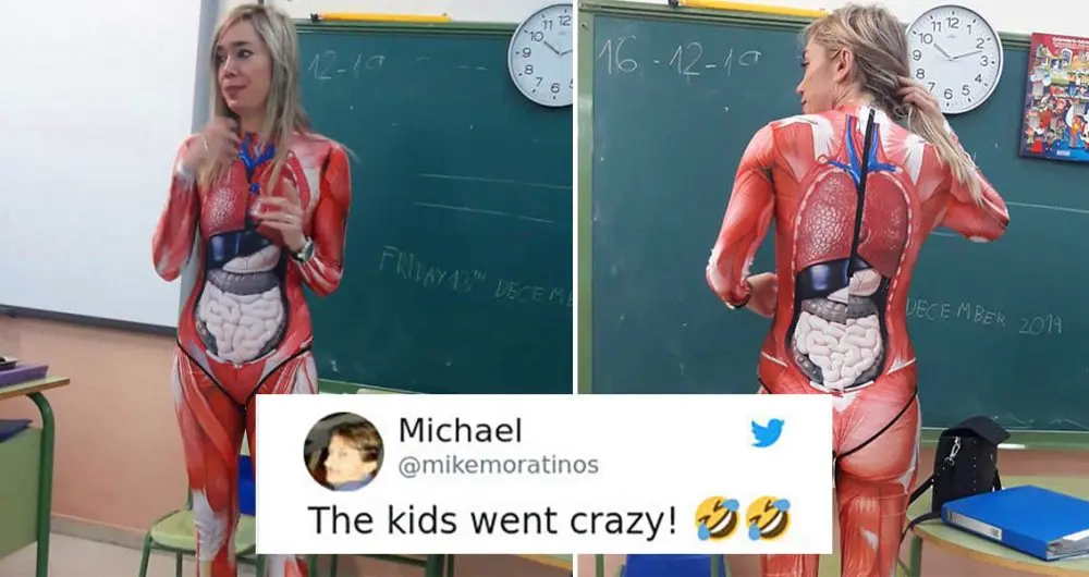 Everyone has that one teacher who tried their best to make you learn and who shown that they care. Well, Verónica Duque is that teacher for the kids in her class. The 43-year-old teacher wanted to engage the students in a different and more high level way. So, she gave the class an anatomy lesson and she was wearing a full-body suit that mapped out the human body in a lot of detail.