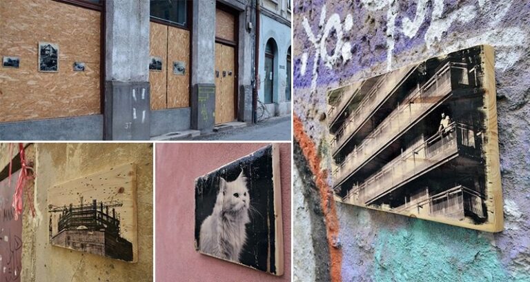 Photographer Ania Ciotlaus from the city of Cluj, Romania loves street photography as well as experimental printing. Wood transferring in particular is a real passion of hers. One of the aspects of this type of printing is that each transferred image is uniquely textured due to the grain of the wood, therefore giving each print added depth and interest. The citizens of Cluj are particularly lucky that Ania lives in the city as she is currently sharing her art on its walls for people to find and take home! What a lovely thing to do. Take a look at her awesome pieces below!