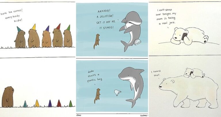 If you like your humor adorable and inoffensive, then you need to check out these cartoons from illustrator Liz Climo. Not only is Climo a talented artist, she knows just how to get a joke across in an economical fashion, without skimping on the laughs. In Liz's ridiculously cute world, polar bears and penguins are friends, and mice help snakes out with their Halloween costumes. Her book The Little World of Liz Climo is available to buy now via Amazon, but you can also check out some of her work on her Tumblr page.